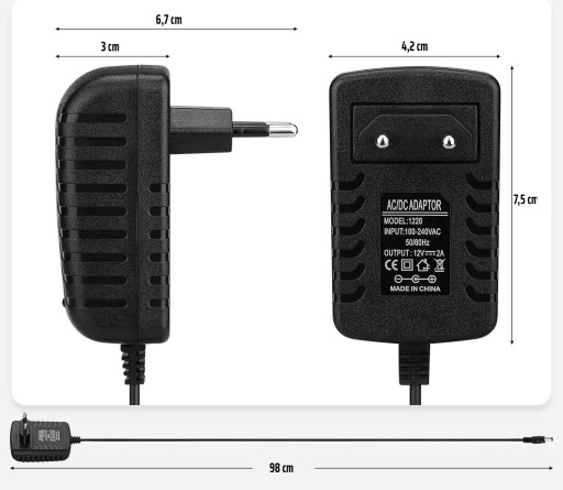 - Wymiary ładowarki: 7,5 x 4,2 x 6,7 cm