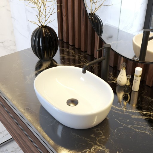 НАСТОЛЬНАЯ РАКОВИНА ISOLA, БЕЛАЯ КЕРАМИКА, ПРЯМОУГОЛЬНАЯ, ОВАЛЬНАЯ ВАННАЯ КОМНАТА