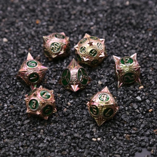 W ofercie sklepu RGFK znajdziesz oryginalne, metalowe kości do RPG nawiązujące do krasnoludów, elfów, wampirów, wilkołaków, czy jednorożców. Jeżeli chcesz podgrzać atmosferę, wybierz kości w stylu steampunk, antyku lub średniowiecza i przenieś się z nimi prosto do świata gry!