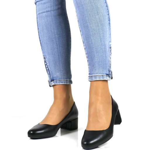 WYGODNE I ELEGANCKIE CZÓŁENKA NA NISKIM OBCASIE CZARNE MATOWE