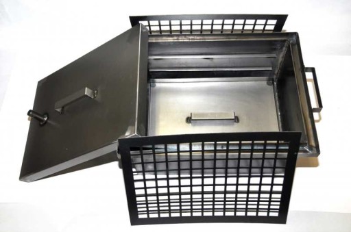 Wędzarnia domowa z uszczelnieniem wodnym. Wędzarnia, suszarnia. Wędzarnia posiada dwa stalowe ruszty i tacę na tłuszcz.