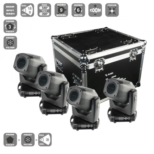 Flash LED 4x Moving Heads 150W 3in1 + case