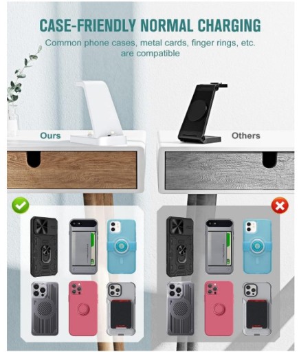 - 【Konstrukcja przyjazna dla obudowy】 Nasza stacja ładująca została specjalnie zaprojektowana dla urządzeń z obudowami ochronnymi. Obsługuje obudowy telefonów o różnej grubości, w tym obudowy OtterBox Defender, obudowy metalowe i akcesoria, takie jak magnesy, karty i uchwyty. Pożegnaj problem zdejmowania etui przy każdym ładowaniu.