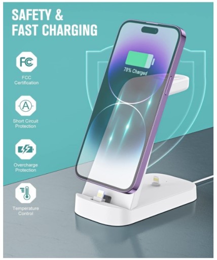 - 【Stacja ładująca 3 w 1 do urządzeń Apple】Uprość ładowanie dzięki naszej wszechstronnej stacji ładującej 3 w 1. Wygodnie ładuje jednocześnie iPhone'a, Apple Watch i AirPods za pomocą tylko jednego kabla, eliminując potrzebę stosowania wielu ładowarek i porządkując przestrzeń życiową. Zintegrowana konstrukcja i precyzyjne położenie gniazda zapewniają wydajne ładowanie bezprzewodowe bez zgubienia.