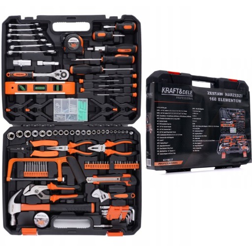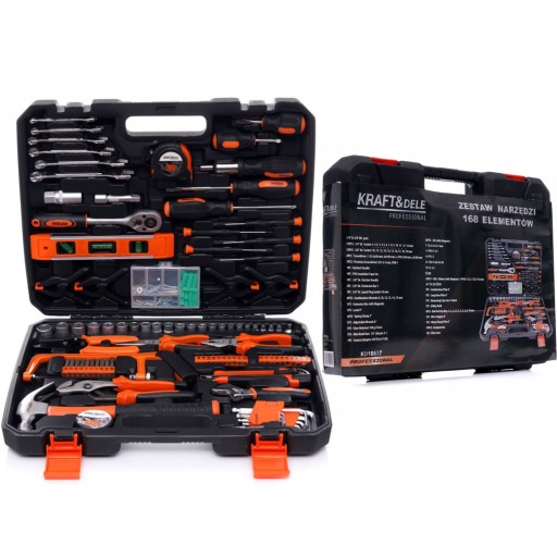✔️ 168-częściowa walizka na narzędzia firmy Kraft&Dele zawiera wszystko, czego potrzebuje nowoczesny wprawiony majsterkowicz hobbysta.