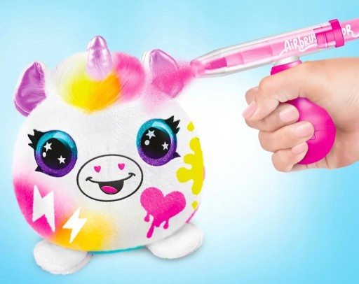 Nadaj swojej mięciutkiej maskotce nowy styl za pomocą łatwej w użyciu pompki do malowania i 2 kolorowych markerów. Stwórz swój wzór odręcznie lub wykorzystaj gotowe wzory z szablonów.