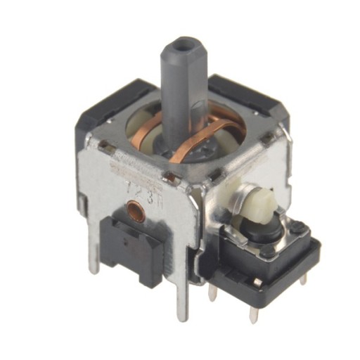 UWAGA! Analog może blokować się w skrajnych pozycjach i jest to normalne. Po wlutowaniu i złożeniu obudowy nigdy nie będzie się blokował. Analog składa się z 2 potencjometrów o rezystancji 10kOhm i tolerancji 20%.