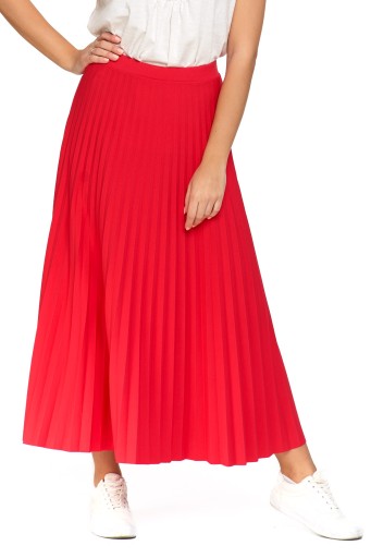 Plisowana spódnica to klasyk, który nigdy nie wychodzi z mody. Ta damska spódnica to idealny wybór na wiele okazji - od codziennych spotkań ze znajomymi, przez eleganckie kolacje, aż po ważne wydarzenia. Spódnica wykonana jest z lekkiego, przewiewnego materiału, co zapewnia wygodę i swobodę ruchów. Model sięga do połowy łydek lub nieco niżej w zależności od wzrostu, co dodaje mu elegancji i kobiecości. Plisy na spódnicy są równomierne i delikatne, co nadaje jej lekkości i delikatności. Spódnica posiada elastyczną, dopasowaną talię, co zapewnia idealne dopasowanie do sylwetki. Dzięki temu spódnica będzie wyglądała pięknie zarówno na kobietach o pełniejszych kształtach, jak i na tych, które mają bardziej smukłą sylwetkę. Można ją zestawić z elegancką bluzką i szpilkami na ważne wyjście, lub z t-shirtem i trampkami na bardziej casualowy look. Ta plisowana spódnica to must-have w garderobie każdej kobiety, która ceni sobie klasykę i elegancję.