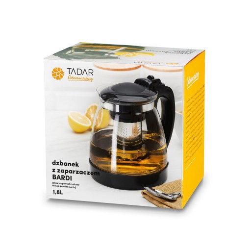 Szklany DZBANEK DO HERBATY kawy ZAPARZACZ do ziół duży uchwyt 1,8L Tadar