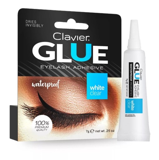 Wysokiej jakości klej do rzęs Clavier GLUE white. Cechuje go wodoodporność, bardzo wysoka lepkość oraz szybkość schnięcia. Bezpieczny dla oka klej przeznaczony do przyklejania rzęs w paskach oraz w kępkach.