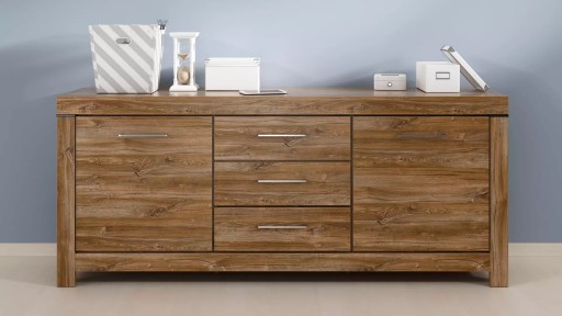 - Przestronna komoda Gent to pojemne miejsce na domowe bibeloty. Do swojej dyspozycji masz 4 przegrody oraz 3 funkcjonalne szuflady zlokalizowane w centralnej części mebla.