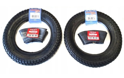 - w komplecie: opona AWINA 2.50-9 - 2szt, dętka AWINA 2.50-9 - 2szt
