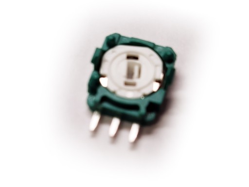 Jak wspomniałem powyżej, analog to 2 potencjometry (kolorowy element z 3 nóżkami, można go odłączyć od obudowy) o rezystancji całkowitej 10kOhm i tolerancji 20%. Oznacza to, że w praktyce mają 9-11kOhm. Oba potencjometry działają jako dzielniki napięciowe. Jeśli po wymianie występuje odchylenie oznacza to, że został zamontowany analog o innych parametrach. Idealnym rozwiązaniem byłoby ponowne skalibrowanie pada, tak jak kalibruje się nowe analogi w JoyCon'ach Nintendo Switch. W związku z tym najprostszym rozwiązaniem jest lutowanie potencjometrów (tych z 3 nóżkami) do skutku, albo zmierzenie starego potencjometru i dobór możliwie jak najbardziej zbliżonego. Wszystkie analogi wysyłamy losowo, nie mierzymy potencjometrów przed wysyłką!