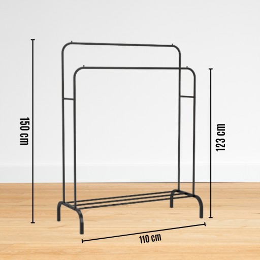 ВЕШАЛКА ДЛЯ ОДЕЖДЫ, БОЛЬШАЯ ПОДСТАВКА ДЛЯ ОДЕЖДЫ, ДВОЙНАЯ, ЧЕРНЫЙ МЕТАЛЛ