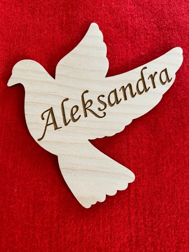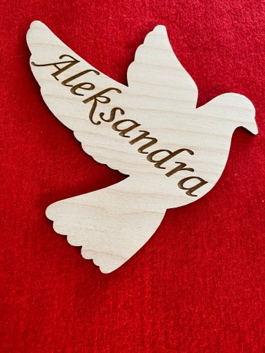 Gołąb wykonany ze sklejki brzozowej 3mm, z grawerowanym dowolnym imieniem.