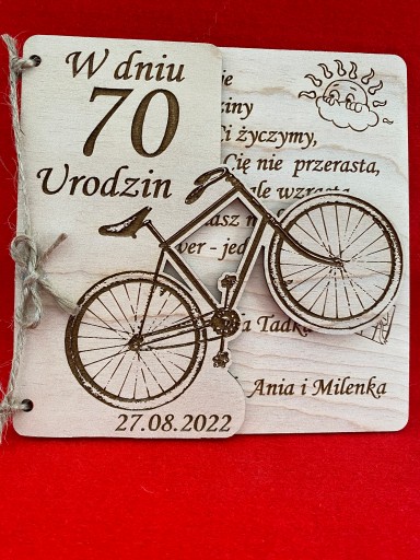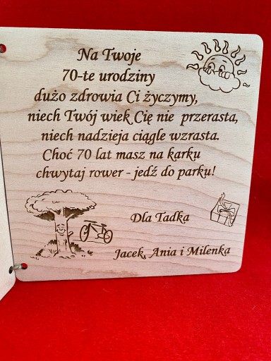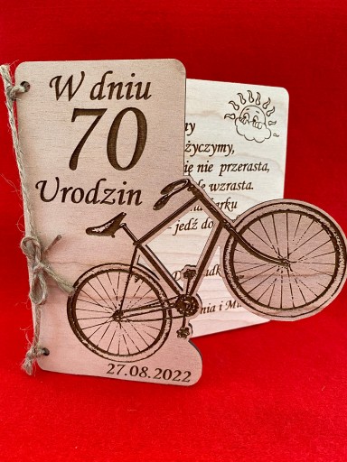 Kartka na urodziny robiona indywidualnie pod zamówienie ze sklejki brzozowej 3mm.