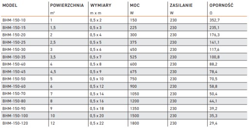 Uwaga! Nie należy nacinać / skracać / łączyć przewodów grzewczych!