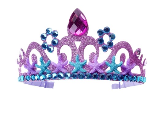 - różowa korona z fioletowym kryształkiem oraz muszelkami, szerokość ok 16cm,