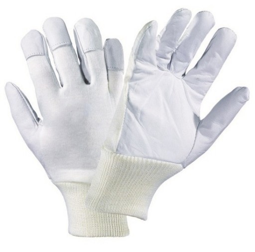 Całodłonicowe rękawice ze skóry licowej koziej, krój amerykański. Strona grzbietowa z bawełny, zakończone ściągaczem. Strona chwytna dłoni, kciuk i końcówki palców ze skóry. Materiały: skóra kozia w kolorze naturalnym, bawełna w kolorze naturalnym Zalety: - komfortowe i elastyczne, wygodne w użytkowaniu. - idealne do obsługi narzędzi ręcznych i elektronarzędzi, prac montażowych i demontażu, konserwacji i obsługi technicznej, prac magazynowych, majsterkowania.