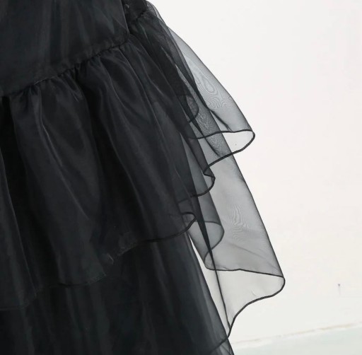 ✅ Dół sukienki atłasowy w 3 falbanki na wzór Wednesday, sukienka na podszewsce, pięknie się prezentuje w tańcu.