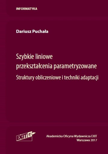 SPIS TREŚCI1. Wstęp1.1. Rys historyczny 1.2. Treść kolejnych rozdziałów 1.3. Komentarz dotyczący notacji matematycznej 1.4. lista częstych oznaczeń skrótowych2. Parametryzowane przekształcenia ortonormalne2.1. Szybkie parametryzowane przekształcenia uogólnione Fouriera-Haara i kosinusowe-Haara 2.2. Szybkie przekształcenia skośne i skośne-Haara z parametryzacją 2.3. Szybkie parametryzowane przekształcenia typu Haara 2.4. Szybkie parametryzowane przekształcenia wzajemnie-ortonormalne 2.5. Szybkie parametryzowane i ortonormalne przekształcenia inwolutoryczne 2.6. Szybkie parametryzowane przekształcenia Fourier i Hartleya 2.7. Przekształcenia parametryzowane o strukturach szybkich przekształceń ortonormalnych 2.8. Uogólnione parametryzowane przekształcenia ortonormalne 2.9. Podsumowanie3. Szybkie parametryzowane przekształcenia biortogonalne3.1. Uogólnione parametryzowane przekształcenia biortogonalne 3.2. Parametryzowane przekształcenia biortogonalne o wektorach bazowych jednostkowej długości 3.3. Podsumowanie4. Techniki doboru wartości parametrów dla przekształceń parametryzowanych4.1. Wyczerpujące przszukiwanie przrestrzeni parametrów 4.2. Parametryzacja w oparciu o wektory referencyjne 4.3. Techniki oparte o adaptację lokalną 4.4. Adaptacja globalna z użyciem technik optymalizacji gradientowej 4.5. Podsumowanie5. Inne przykłady znanych przekształceń parametryzowanych i technik adaptacji5.1. Parametryzacja ortonormalnych przekształceń falkowych 5.2. Adaptacyjny dobór postaci struktury obliczeniowej przekształcenia 5.3. Podsumowanie6. Wybranie zastosowania przekształceń parametryzowanych6.1. Filtracja odszumiająca 6.2. Stratna kompresja danych 6.3. Klasyfikacja danych 6.4. Szyfrowanie danych 6.5. Łączne szyfrowanie i stratna kompresja danych 6.6. Podsumowanie7. Szybkie przekształcenia parametryzowane w ujęciu sztucznych sieci neuronowych 8. Podsumowanie 9. Bibliografia