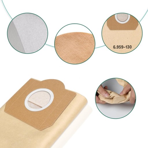 Worki są wykonane z 2-warstwowego ekologicznego papieru mikrofiltracyjnego. Są łatwe w montażu i wymianie. Regularna wymiana worków filtracyjnych pozwala utrzymać wydajność i żywotność Twojego odkurzacza.