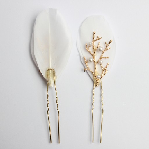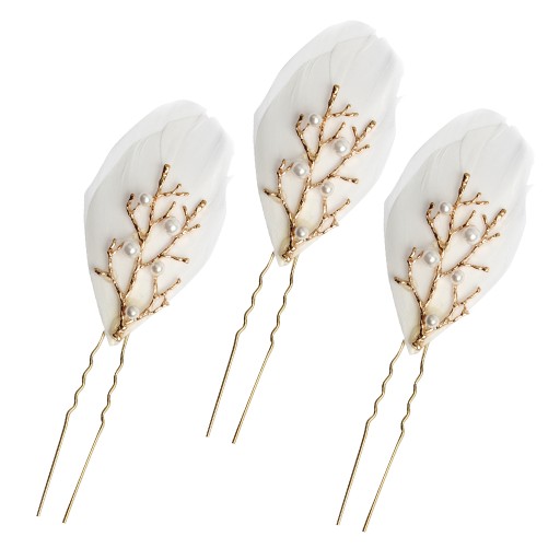 Лот из 3 потрясающих заколок для волос с перьями и жемчугом, свадебных аксессуаров.