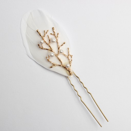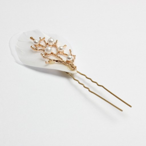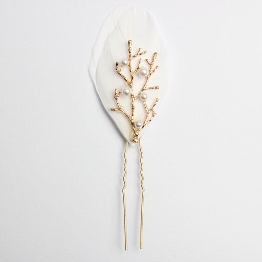 Oszałamiająca kryształowa spinka do włosów z pereł ślubnych z piór