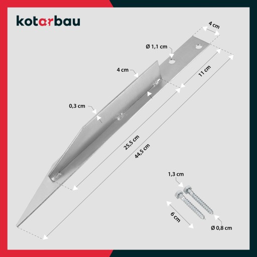 4x PODSTAWA KĄTOWA DO HUŚTAWKI WBIJANA KOTWA STABILIZUJĄCA 44,5x4cm BLACHA + 8 WKRĘTÓW