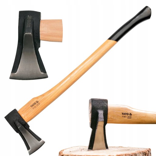 Obuch siekiery wykonany ze stali węglowej, powierzchnia szlifowana. Osadzona na trzonku wykonanym z bezsękowego drewna hikorowego. Gatunek tego drewna ceniony jest za elastyczność i twardość, wytrzymałość oraz odporność na złamania. Połączenie obucha z trzonkiem zabezpieczone jest dużym klinem drewnianym oraz stalowym klinem pierścieniowym. Waga 2000 g, trzonek dł. 82cm. Wysokiej jakości siekiera, przeznaczona do intensywnej pracy w ogrodzie i na budowie. Obuch w kształcie klina ułatwia rozłupywanie klocków drewna.