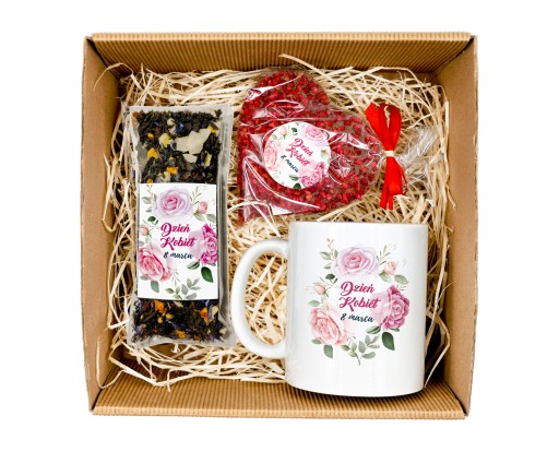 ✨ ZESTAW PREZENTOWY Z OKAZJI DNIA KOBIET - 8 MARCA - KUBEK HERBATA CZEKOLADA PREZENT UPOMINEK✨