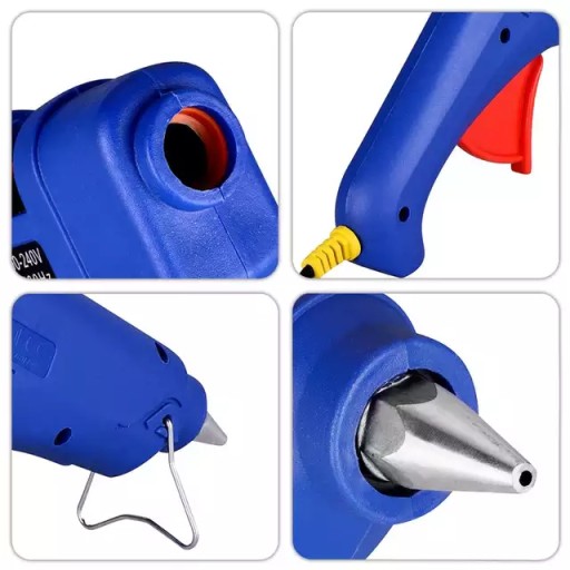 - Pistolet do kleju na gorąco: duży, do ręki, mocny 100W. Na wkłady 11 mm, zgodnie z oferowanym klejem w zestawie.