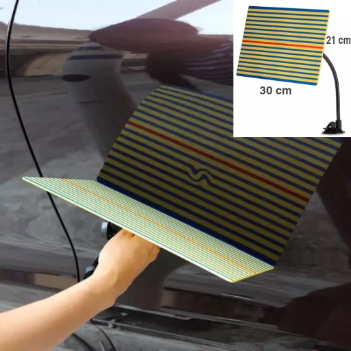 Paski odbijające się na lakierze pokazują dokładny kształt wgniecenia co pozwala na kompleksową ocenę wgniecenia.