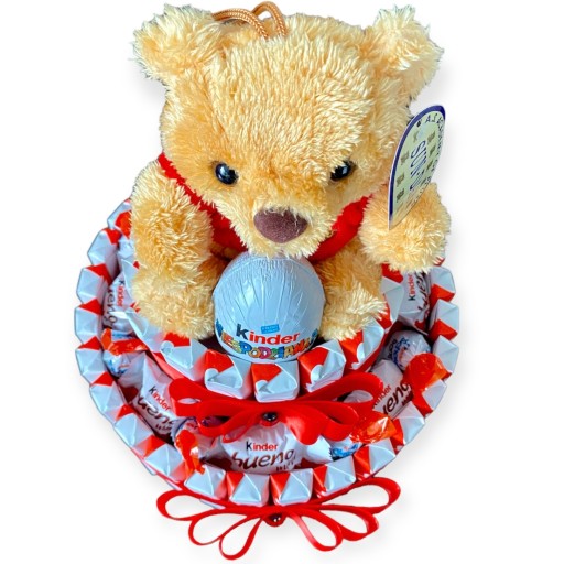 Tort 2 piętrowy z Kinderków miś maskotka Prezent na Urodziny Dzień Dziecka