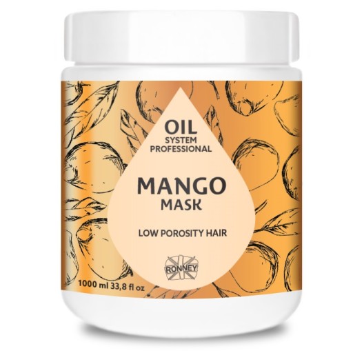RONNEY Professional Oil System Maska MANGO, Włosy niskoporowate, 1000 ml