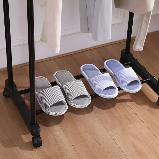 Na stojaku możesz umieścić zarówno ubrania ale też buty czy torebki dzięki dodatkowej przestrzeni na dole stojaka.