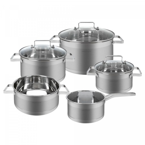 Zestaw składa się z 5 garnków o pojemności 2x 1,5l; 2.0l; 2.5l oraz 5.0l wraz z pokrywkami przeznaczony między innymi do gotowania mięsa i warzyw.