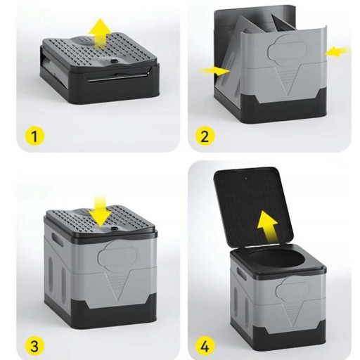 ✔️ Może być używana nie tylko jako toaleta przenośna, ale może być również używana jako mały stołek, kosz na śmieci, schowek, toaleta wewnętrzna dla osób wymagających opieki, wiadro itp.