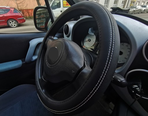 Nakładka pasuje na kierownice o średnicy od 37cm do 39cm (zewnętrzna średnica), czyli większość samochodów występujących na rynku.
