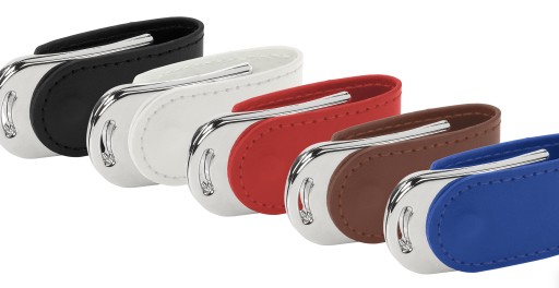 Elegancki, skórzany model. Nowoczesna i poręczna konstrukcja z magnetycznym klipsem. Wariant w kolorze białym pozwala na nadruk full-color. Dostępne 5 kolorów skóry.