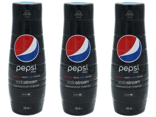 3x КОНЦЕНТРАТ СИРОПА SODASTREAM PEPSI MAX ДЛЯ САТУРАТОРА НАПИТКОВ ОБЪЕМОМ 9 Л, 440 мл