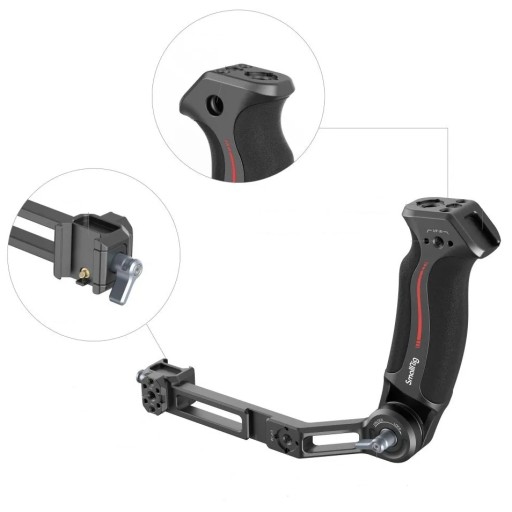 Regulowana konstrukcja uchwytu w zakresie 180° umożliwia dostosowanie jego pozycji do aktualnych potrzeb. Uchwyt jest kompatybilny ze stabilizatorami DJI RS 2, RSC 2, RS 3, RS 3 Mini i RS 3 Pro.
