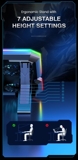 Podstawka pod laptopa to przede wszystkim nowoczesny wygląd, stabilna konstrukcja oraz wydajny system wentylatorów z możliwością regulacji obrotów. Rozmieszczenie wentylatorów zapewnia doskonałe i efektywne chłodzenie laptopa bez względu na umiejscowienie nagrzewających się podzespołów notebooka (procesor, karta graficzna, układy zasilania, dyski twarde). Szeroka kompatybilność z laptopami i notebook'ami o różnych wielkościach matryc 10,12,13,14,15.6, 16, 17". Konstrukcja umożliwia korzystanie z podstawki na kolanach. Hydrauliczne łożyska pracują bardzo cicho. Przy ustawieniu najniższych obrotów wentylatorów hałas jest praktycznie niesłyszalny. Dolna część podstawy posiada dodatkowe nóżki zwiększające kąta nachylenia, tak aby zapewnić jak największą ergonomię pracy.