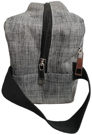 Kosmetyczka męska w szarym kolorze z suwakami nadającymi charakteru.