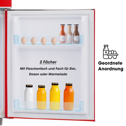 Design retro jest dostępny w pięciu różnych kolorach, aby dopasować się do Twojego stylu i kuchni. Górne i dolne drzwi są wyposażone w uchwyty, które są nie tylko funkcjonalne, ale także stylowe.