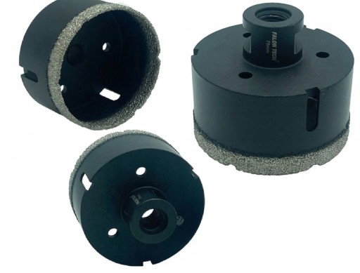 Diament w otwornicach FALONTECH osadzony jest metodą lutowania próżniowego. Oznacza to, że drobiny diamentu zatopione są w materiale. Nie są to otwornice pokryte diamentem tylko z wierzchu. Dzięki temu koronki FALONTECH odznaczają się: