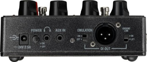 - Balanced male XLR DI out with switchable analogue speaker emulation