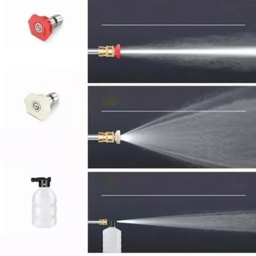 - Wyposażona w 3 różne dysze, czerwona wysokociśnieniowa dysza do bezpośredniego natryskiwania może czyścić uporczywe plamy, biała dysza w kształcie wachlarza może czyścić duże powierzchnie, a piankowa butelka ze spryskiwaczem ułatwia natryskiwanie ciśnieniowe.