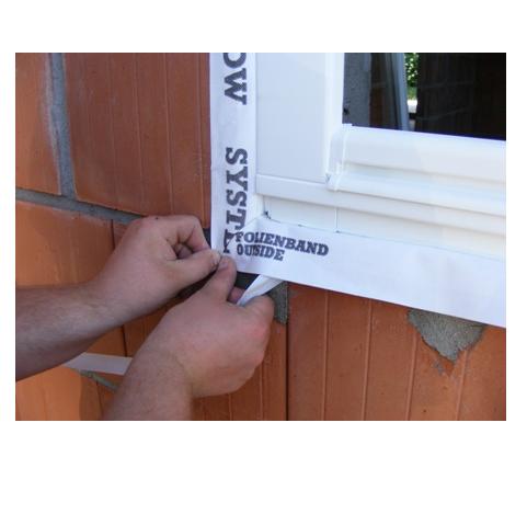 Paroprzepuszczalna rozciągliwa i elastyczna taśma PE laminowana obustronnie włókniną polipropylenową - umożliwiająca dyfuzję pary wodnej od wewnątrz złącza okiennego i zabezpieczająca przed wnikaniem wilgoci od zewnątrz. Wewnętrzna strona taśmy pokryta jest całkowicie klejem o doskonałej przyczepności do większości materiałów budowlanych - co przy wyklejaniu na ościeże i dalszej obróbce tynkarskiej eliminuje powstawanie pęcherzy powietrza pod taśmą. Wzmocniona wewnętrznym zbrojeniem siatkowym warstwa kleju jest odporna na niskie temperatury (do -12°C). Dodatkowy pasek klejący na drugiej strony taśmy umożliwia wygodne przymocowanie taśmy do krawędzi ramy okiennej lub futryny drzwiowej.