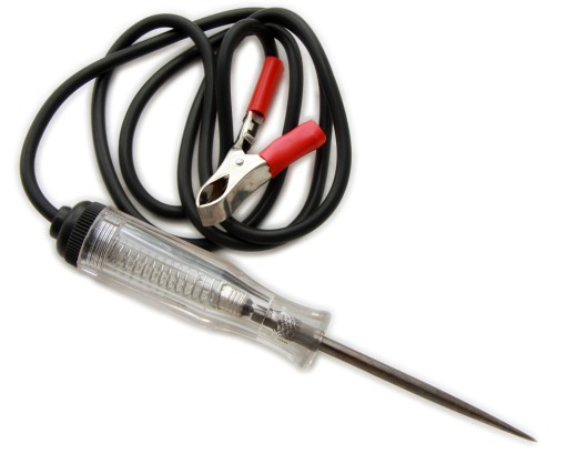 - Samochodowy próbnik napięć 6-24V z przewodem pomiarowym oraz zaciskiem uziemiającym typu „krokodylek”.